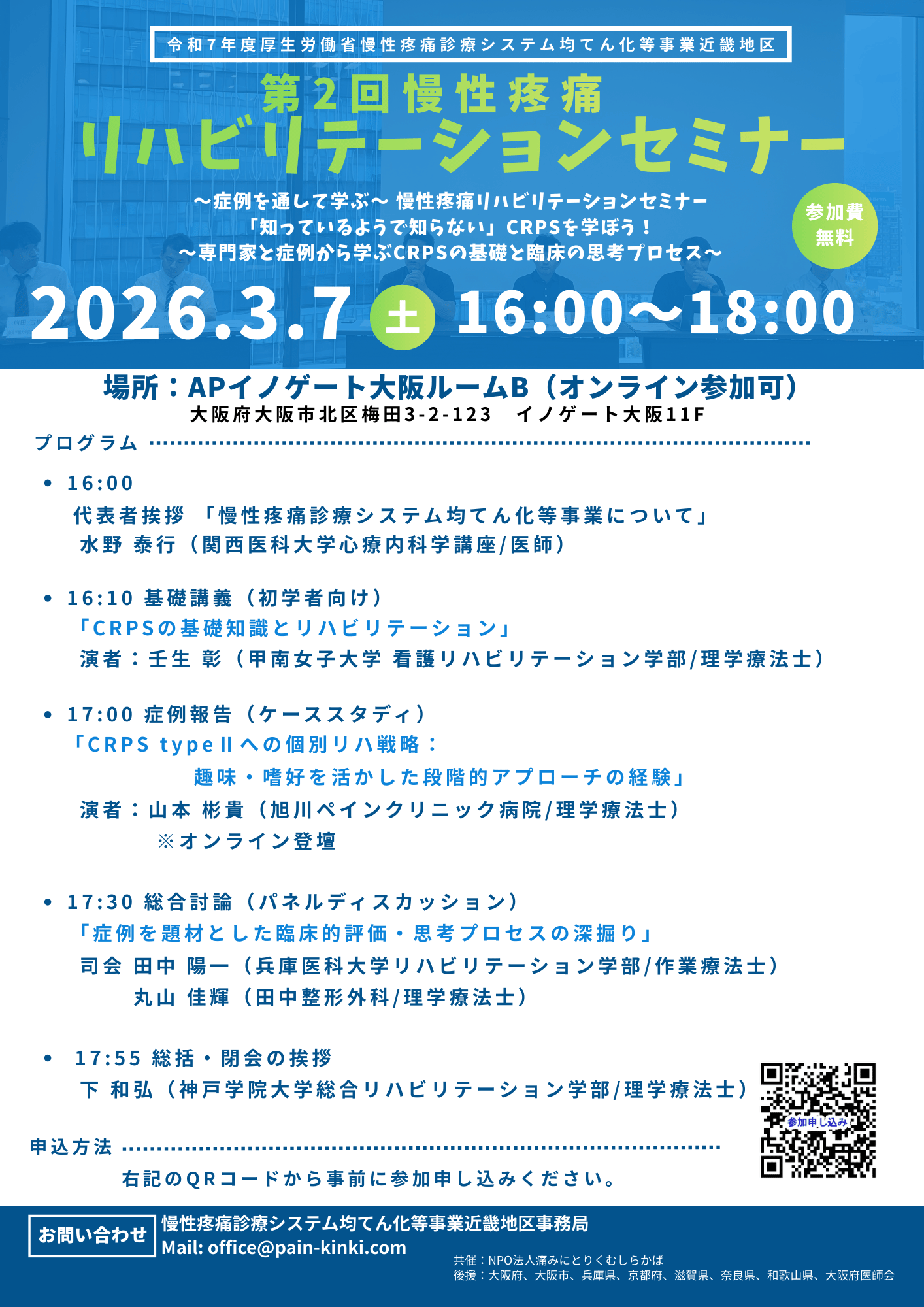 医療者が語る!なかなか治らない痛みとの上手な付き合い方 ~オンライン市民公開講座~