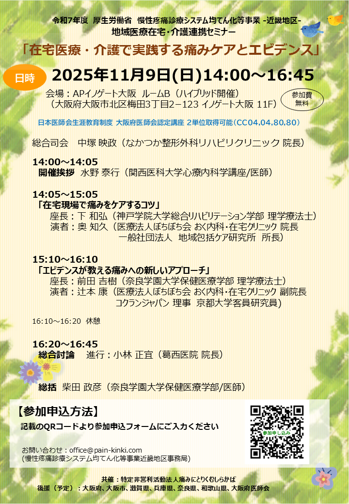 「在宅医療・介護で実践する痛みケアとエビデンス」 を開催します