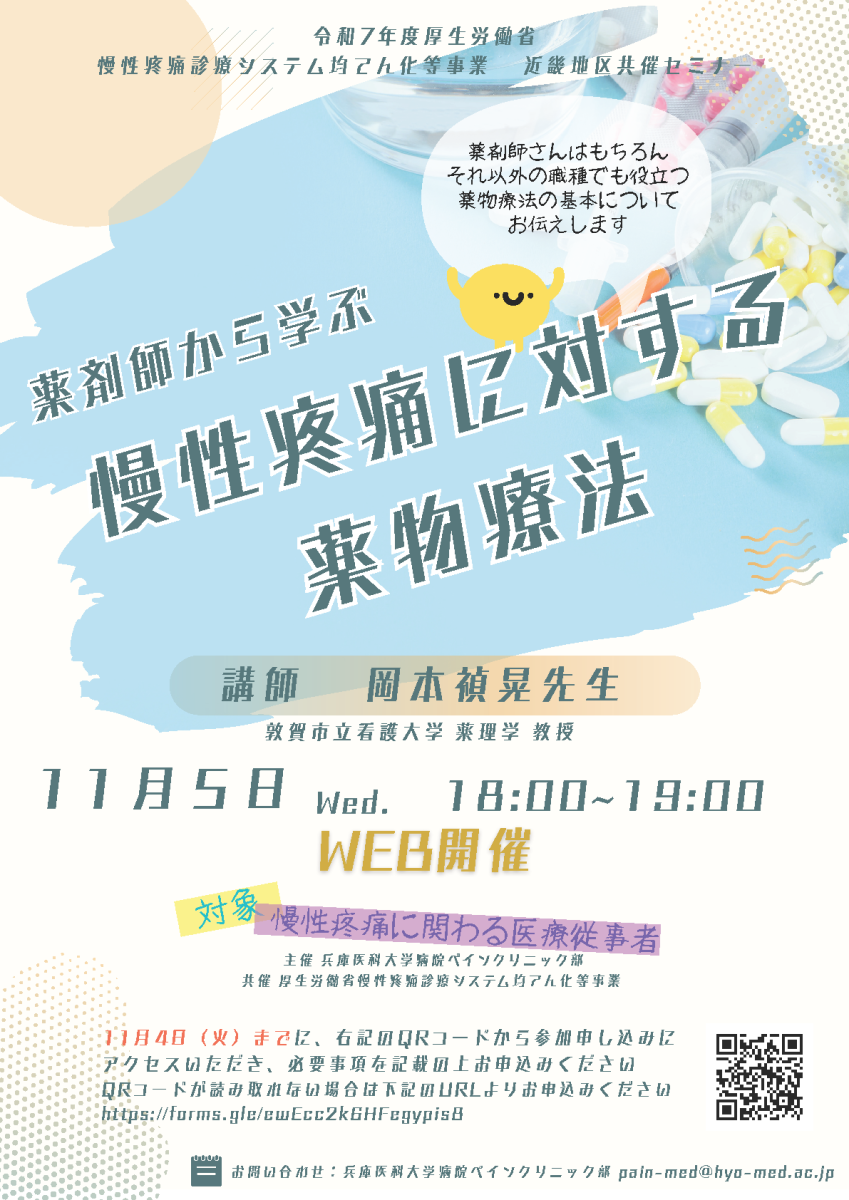 兵庫医科大学主催セミナー(慢性疼痛に対する薬物療法)を開催します