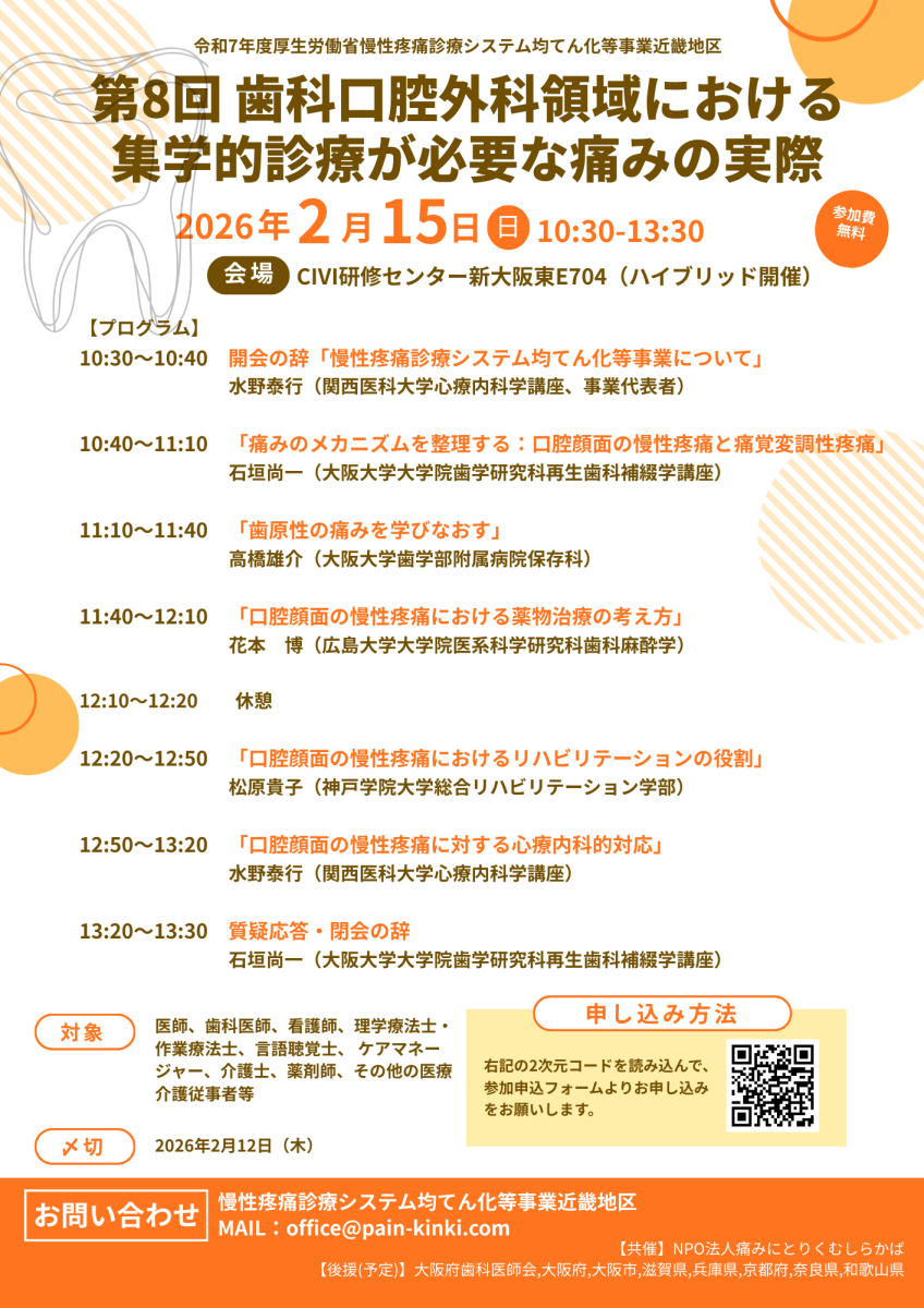 第8回歯科口腔外科領域における集学的診療が必要な痛みの実際 を開催します