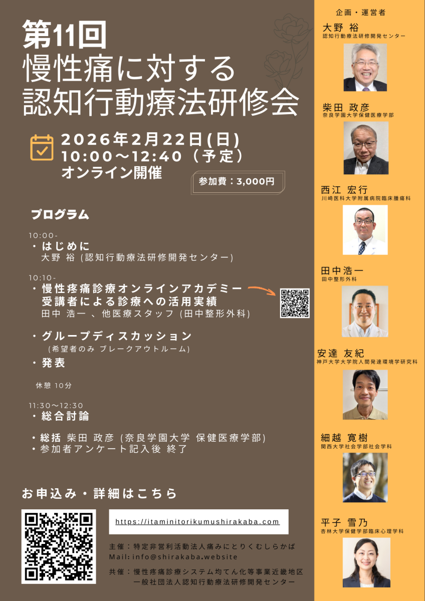 第11回慢性痛に対する認知行動療法研修会(共催) を開催します