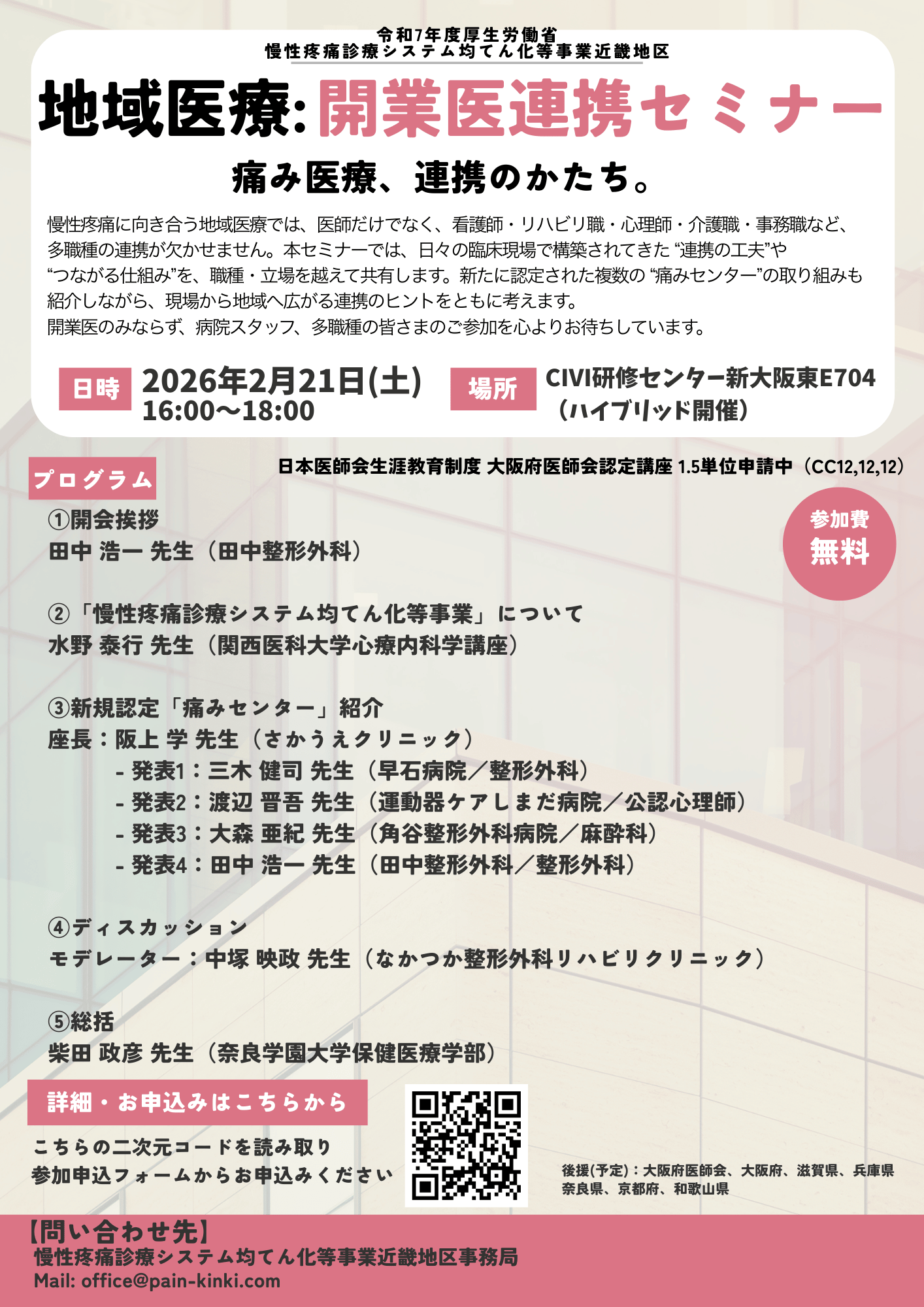 医療者が語る!なかなか治らない痛みとの上手な付き合い方 ~オンライン市民公開講座~
