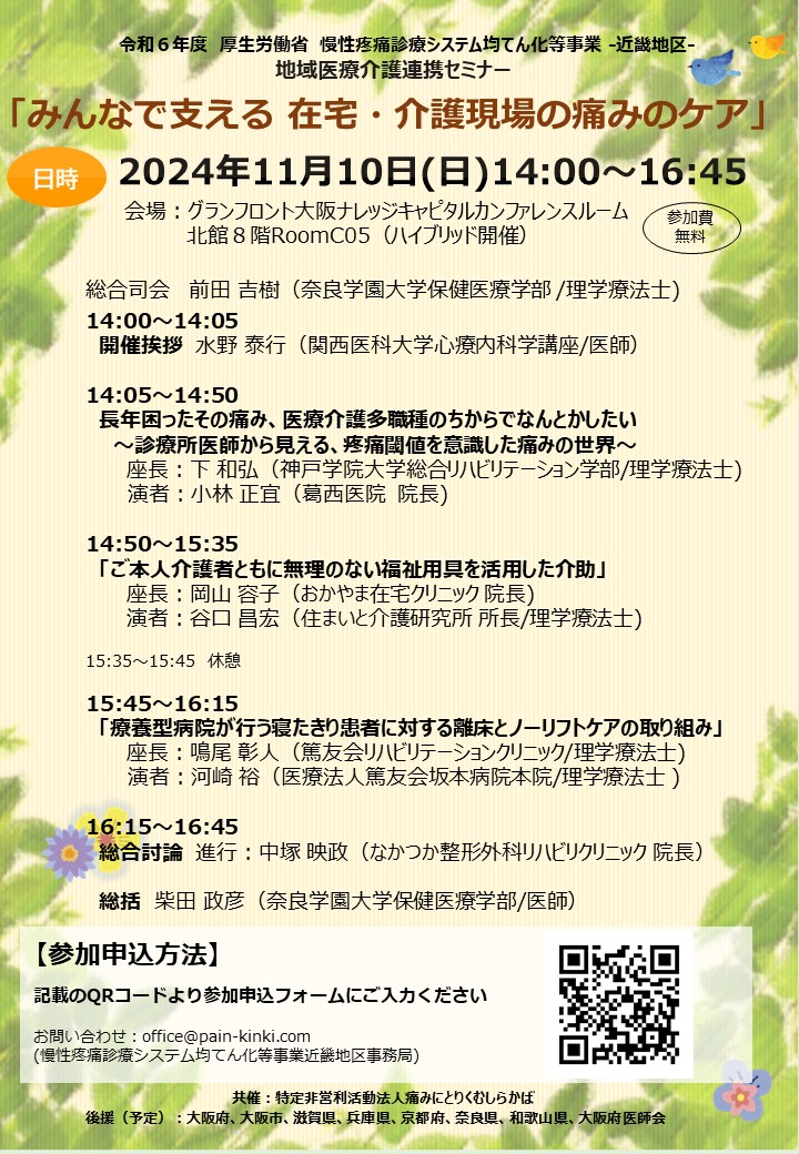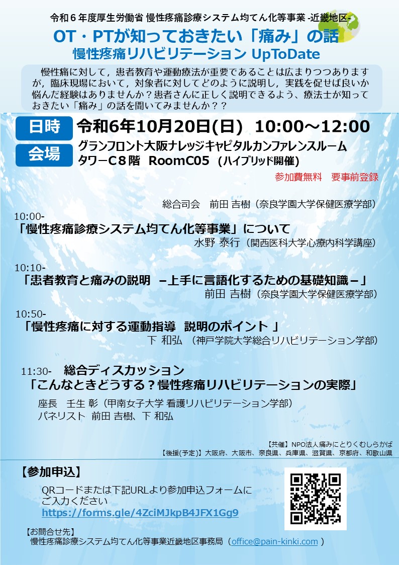 - 第2回西日本慢性疼痛クリニカルセミナーを開催します